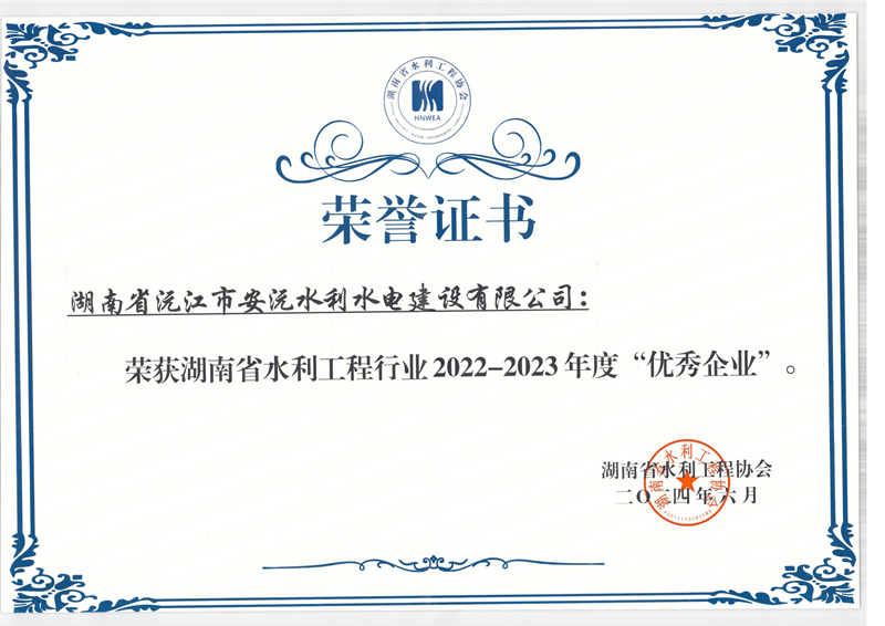 • 2024-06-29 安沅公司榮獲湖南省水利工程行業(yè)“優(yōu)秀企業(yè)